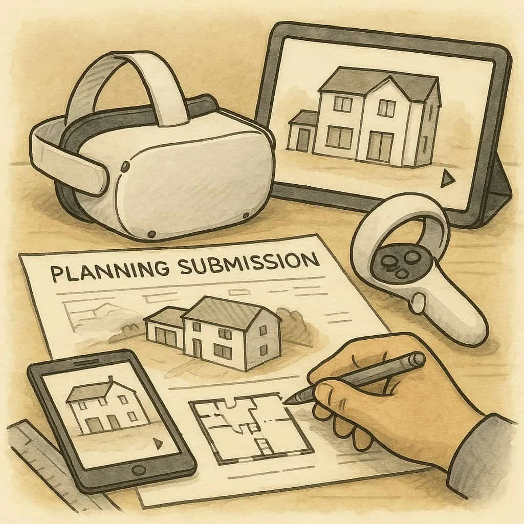 During an interactive design meeting, we walk through layouts in VR to choose the best option together. We then prepare and submit the planning pack (drawings, elevations, and supporting notes) and handle officer queries on your behalf.